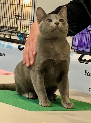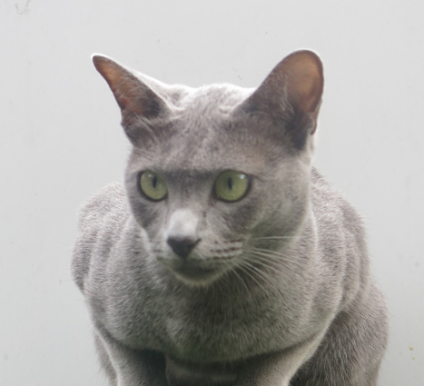 eye shape and colour, a close lying coat and a lovely Korat expression. He has had a very successful show career winning many top placing