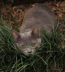 Our association with Korats started in 1992. While looking for an outgoing breed of cat we saw an advertisement for Korat kittens. At the time our only knowledge about the breed was gleaned from information in cat books. Not long after, we met the little ball of steel wool and it was love at first sight. A delightful and playful boy, Ziggy's antics never failed to amaze us. He had a true Korat temperament - mild, with a will of iron! Ziggy was not afraid of anything and was convinced that he could do anything he had not previously been told not to, adapted quite easily to new situations, and had good self confidence. Playful, loyal and affectionate, Ziggy and our toy poodle, Monty, became inseperable. His premature death left a huge hole in our lives and a determination to learn more about this rare and little know breed.