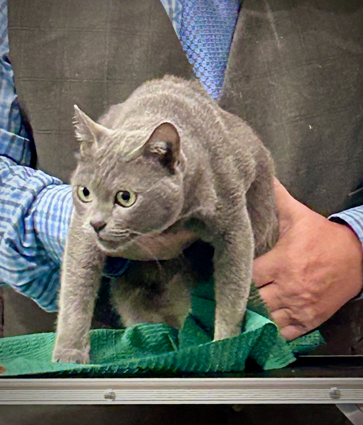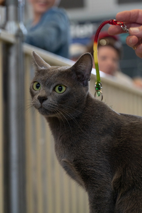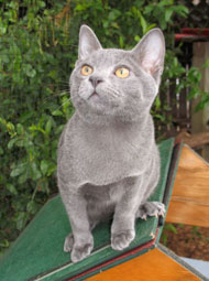 eye shape and colour, a close lying coat and a lovely Korat expression. He has had a very successful show career winning many top placing