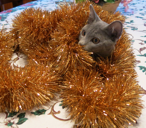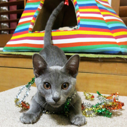 being a playful kitten, was happy to get into the Christmas spirit