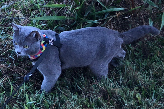 Zac loves going for a walk with a harness