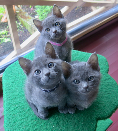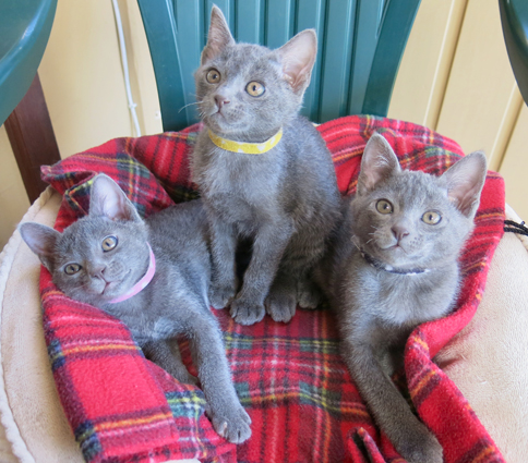 Dixie's kittens at 6 weeks. Little girl (left) and two boys (middle