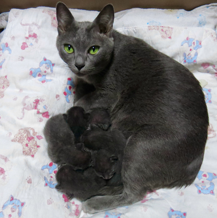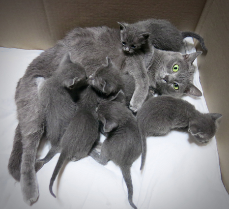 Dixie and her newborn kittens.
