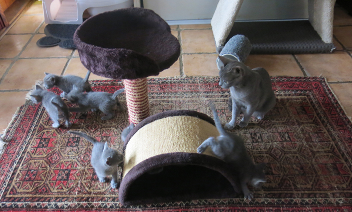 Dixie's kittens are 8 weeks old and having a lot of fun!