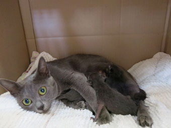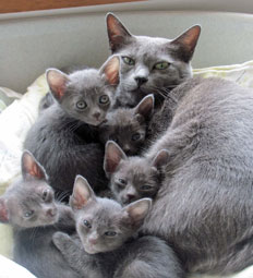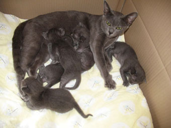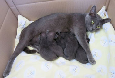 Mitzi with her one week old kittens.